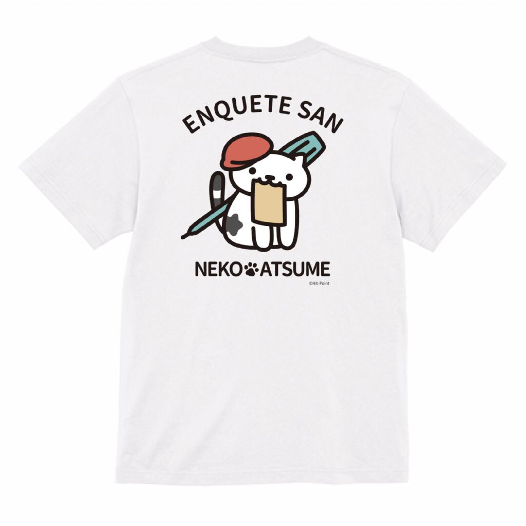背面にあんけーとさんがプリントされた、あんけーとさん推しにオススメのTシャツです♪胸元にはねこあつめのロゴが入っています。